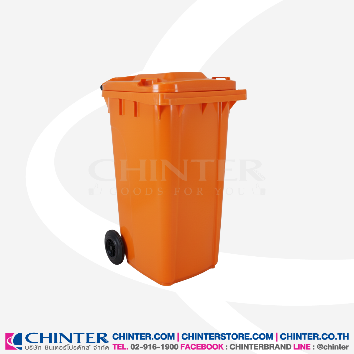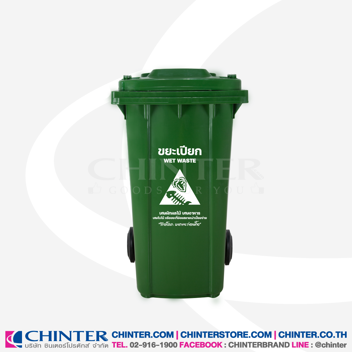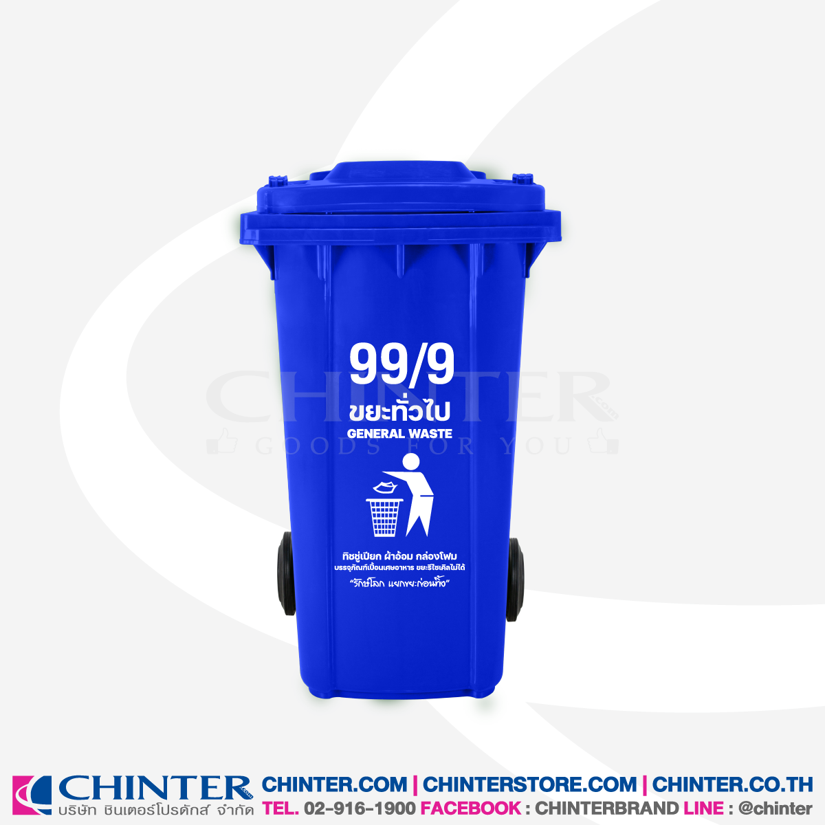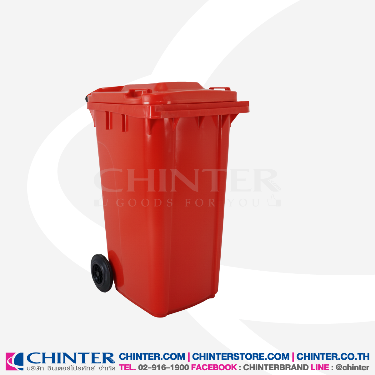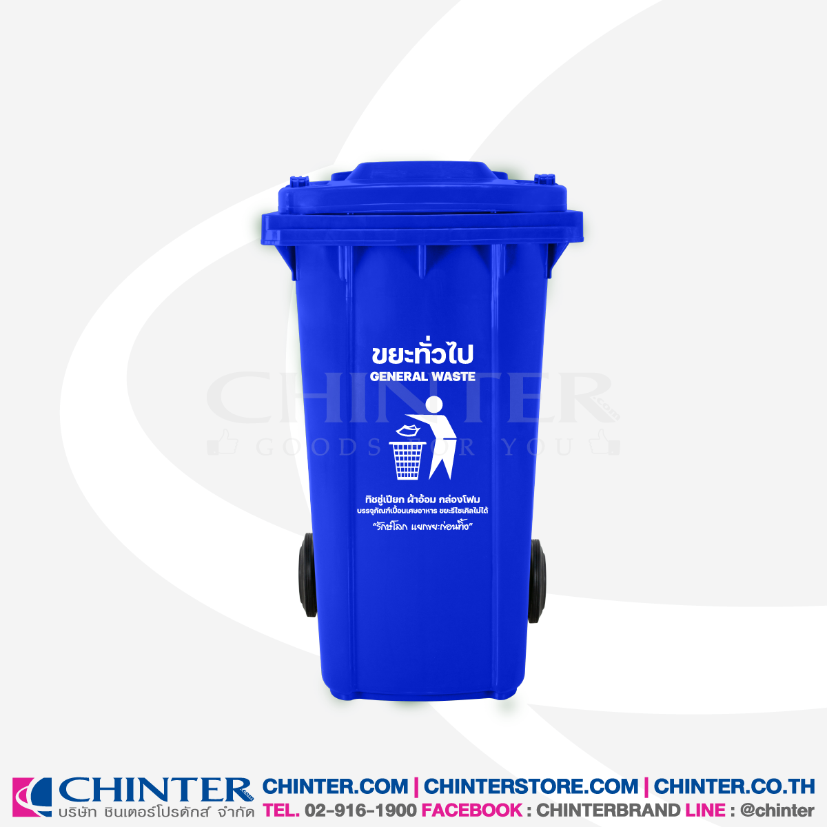 CHINTER F-0531 ถังขยะพลาสติก 240 ลิตร(อย่างหนาโครตเหนียว) หน้าร่อง ฝาเรียบมีล้อ ไม่สกรีน/สกรีน