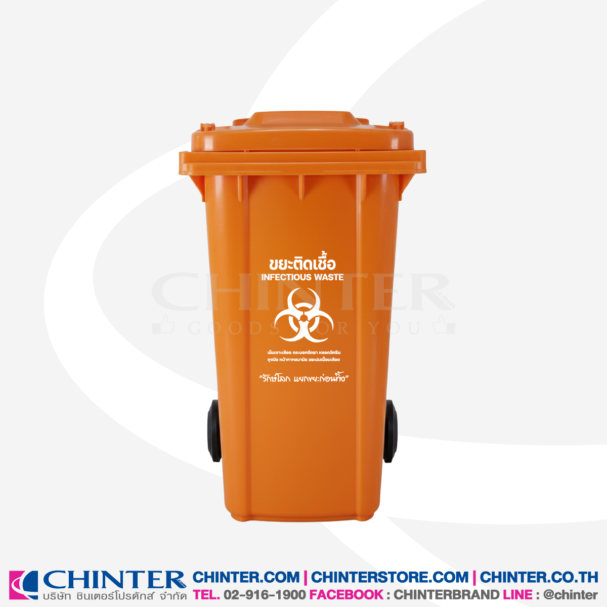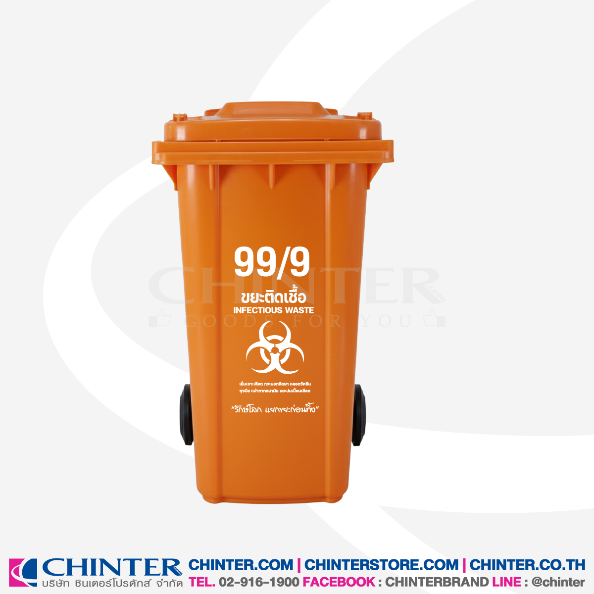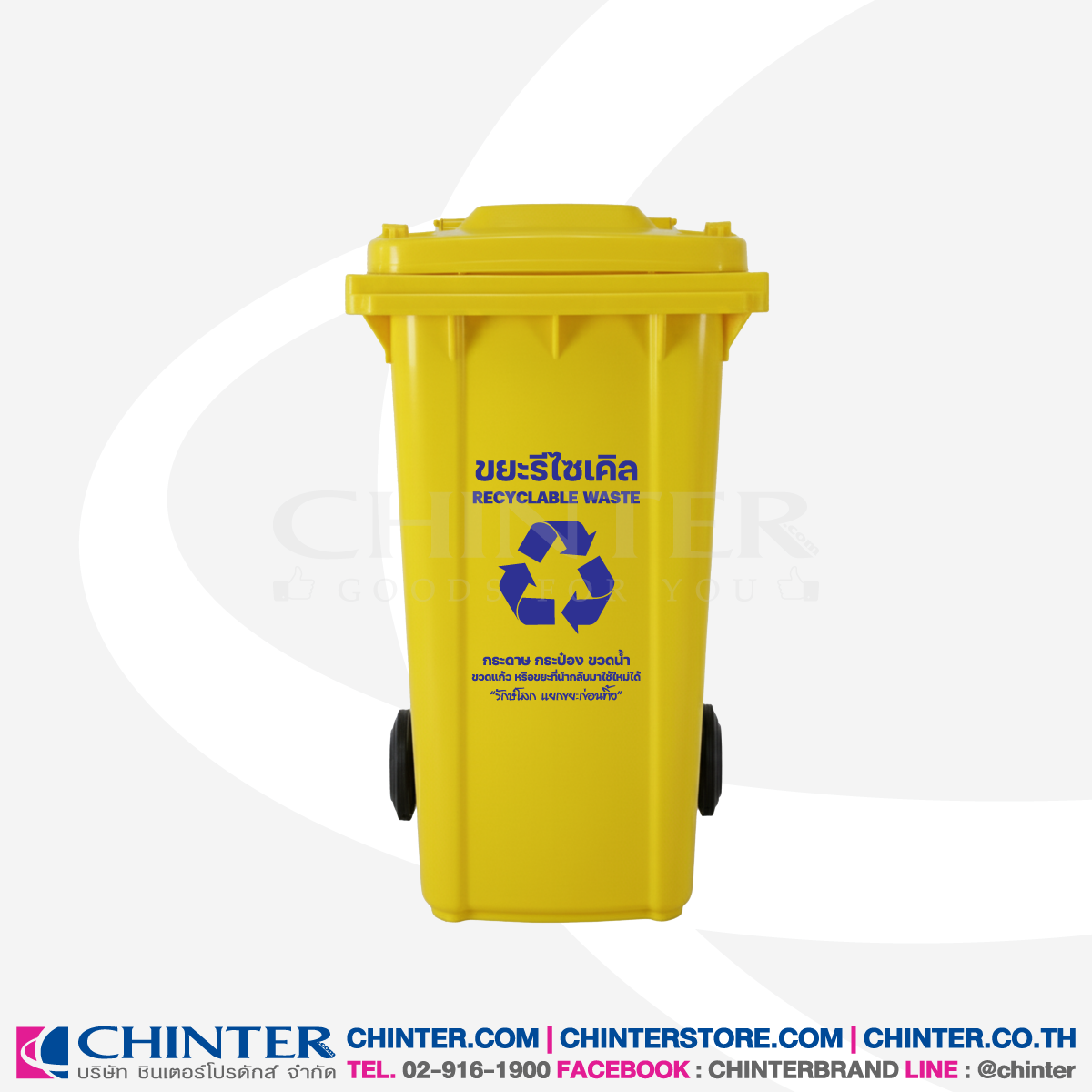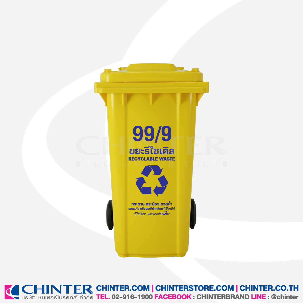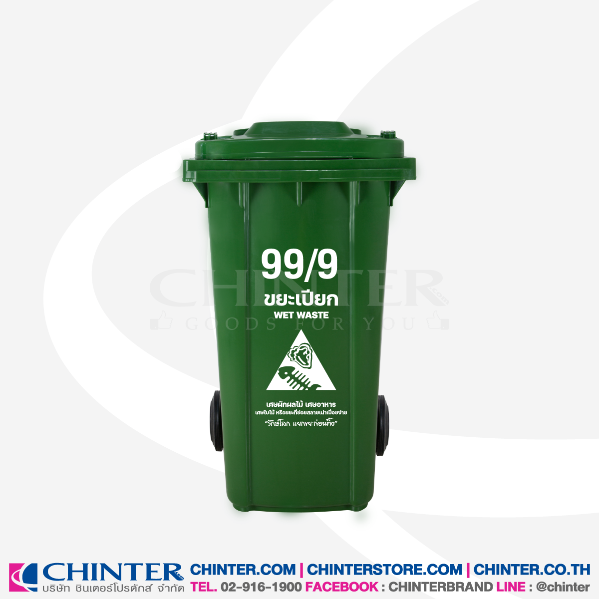 CHINTER F-0531 ถังขยะพลาสติก 240 ลิตร(อย่างหนาโครตเหนียว) หน้าร่อง ฝาเรียบมีล้อ ไม่สกรีน/สกรีน