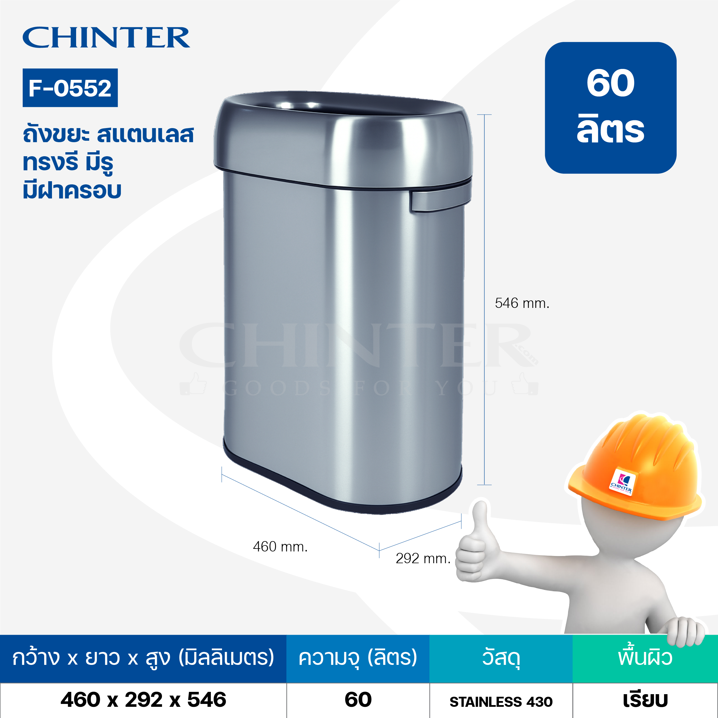 F-0552 ถังขยะสแตนเลสทรงรี มีรู มีฝาครอบ ขนาด 60 ลิตร