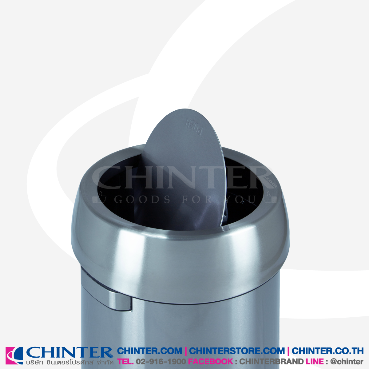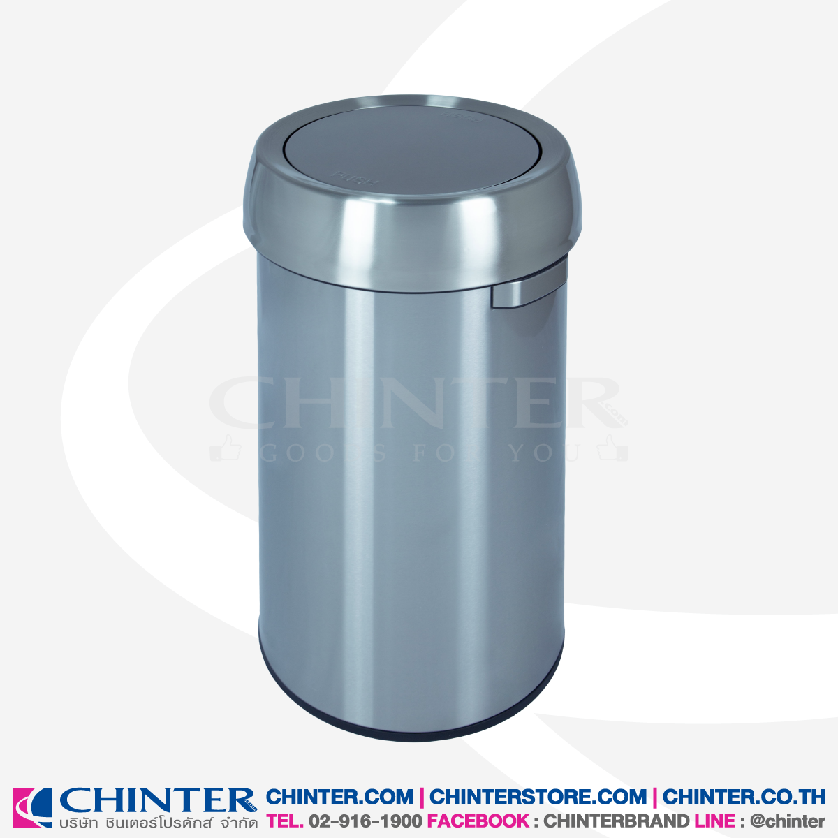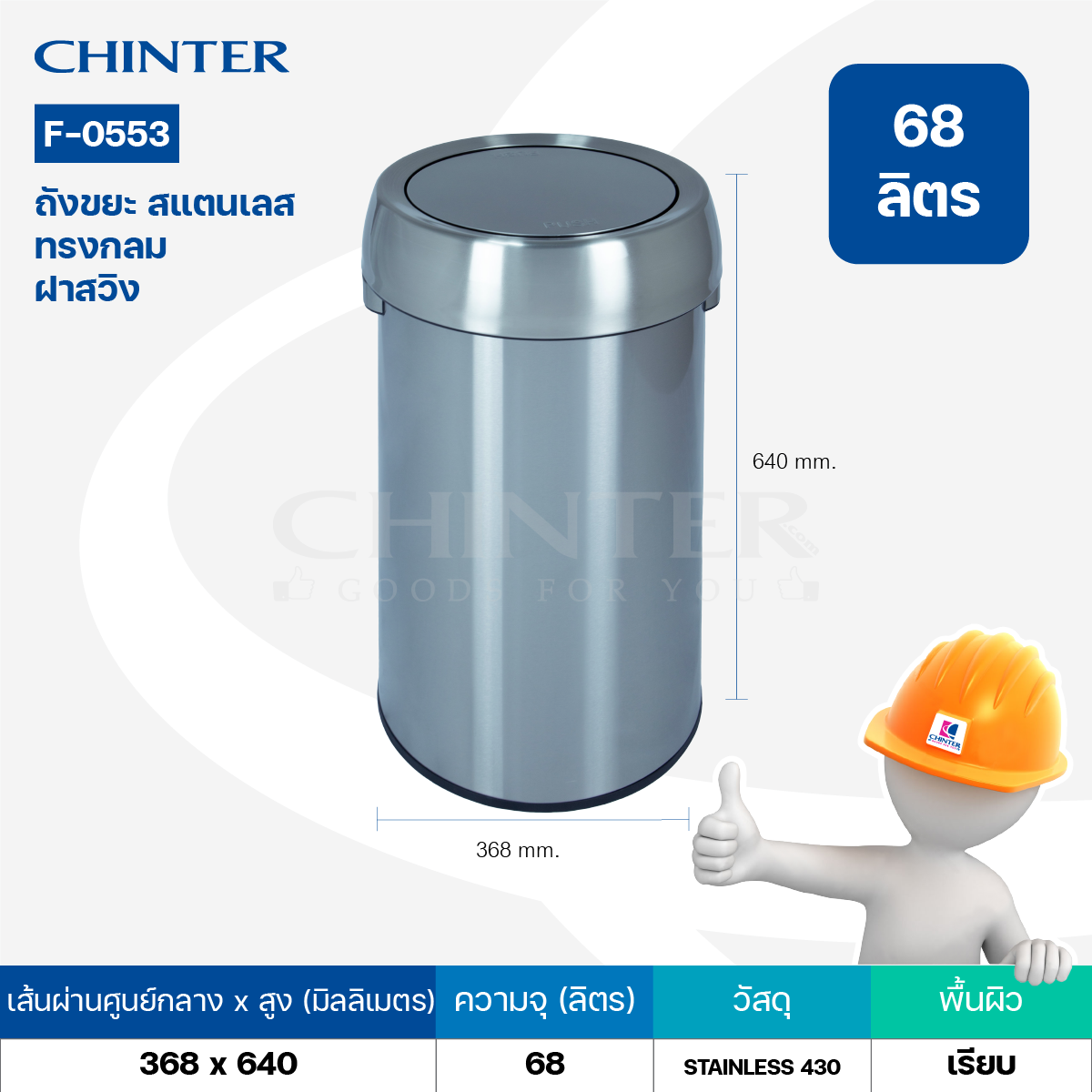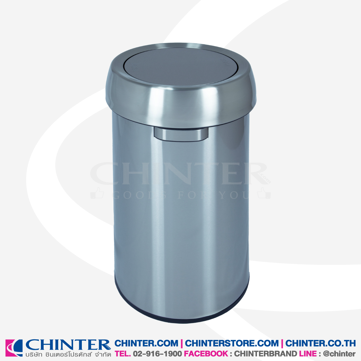 ❇️CHINTER F553 ถังขยะสแตนเลสทรงกลม ฝาสวิง ขนาด 68 ลิตร