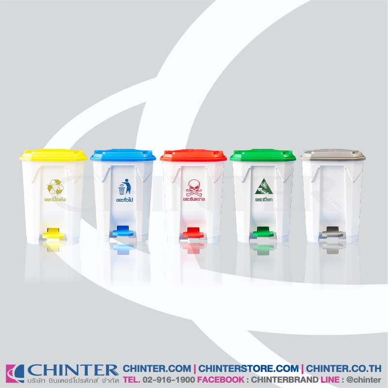 ถังขยะ 30 ลิตร เท้าเหยียบ ไม่มีล้อ (มาใหม่) มีตัวถังสีขาว ฝาสีเหลือง, ฝาสีน้ำเงิน, ฝาสีแดง, ฝาสีเขียว, ฝาสีเทา แบบไม่สกรีน/สกรีนคัดแยกขยะ